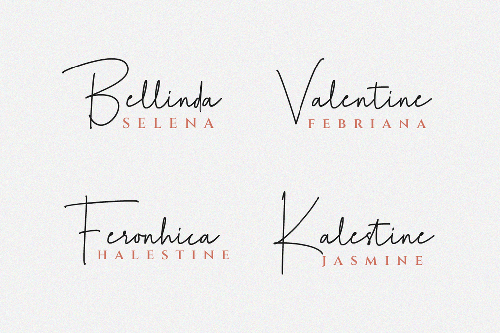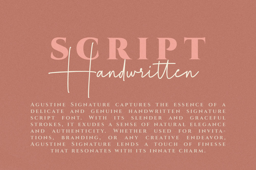 Agustine Signature captures the essence of a delicate and genuine handwritten signature script font. With its slender and graceful strokes, it exudes a sense of natural elegance and authenticity. Whether used for invitations, branding, or any creative endeavor.