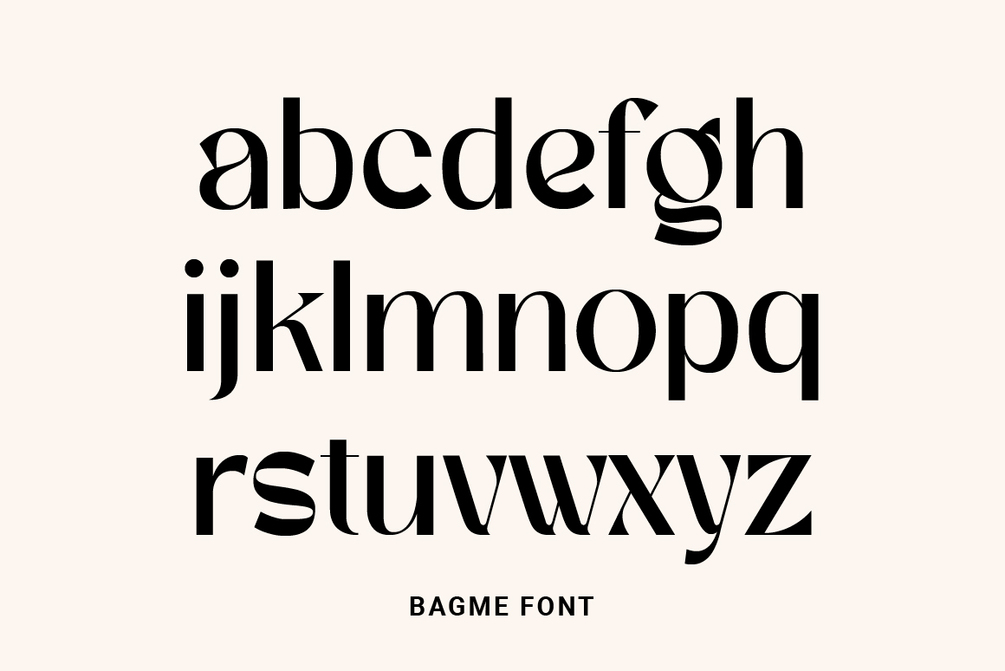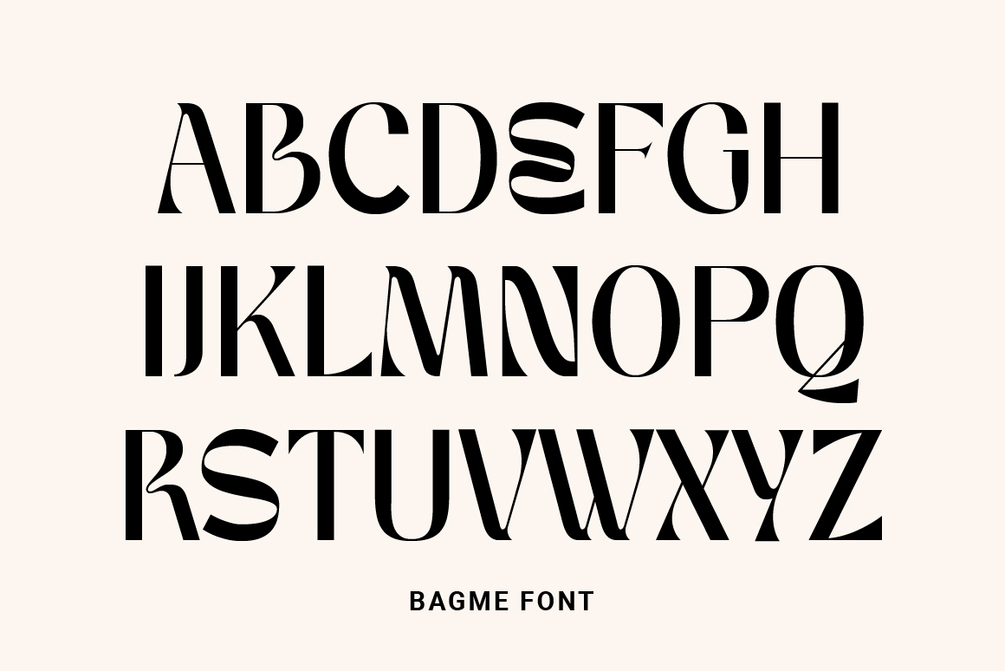 BAGME is a stylish display typeface. Has a distinct curve and a lively personality. Ideal for projects that require a distinct personality.