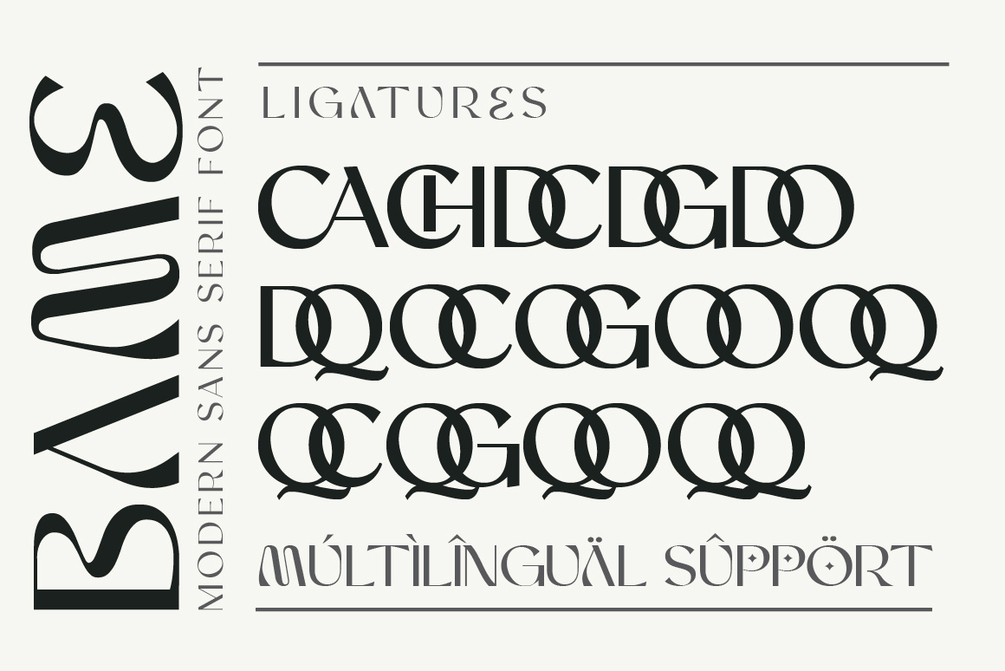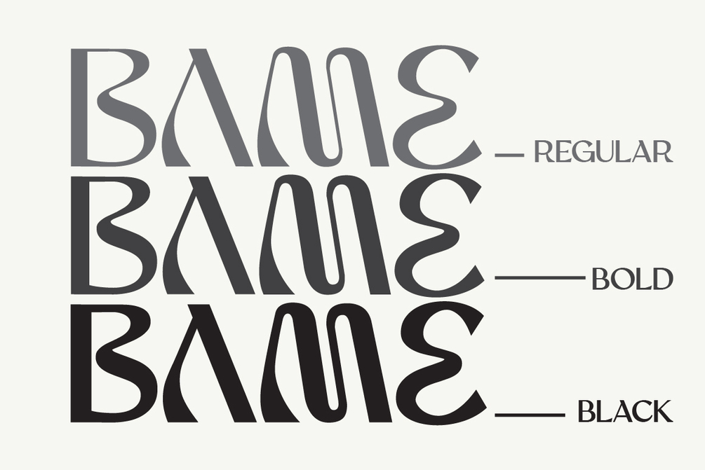 BAME is a display typeface. Has a distinct curve and a lively personality. Ideal for projects that require a distinct personality.