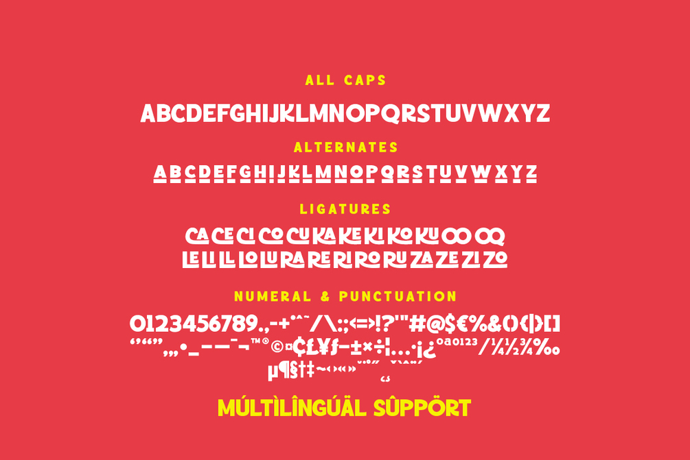 Feature: Alphabet, Ligature, Alternate, Numeral, Punctuation, PUA Encode, Multilingual