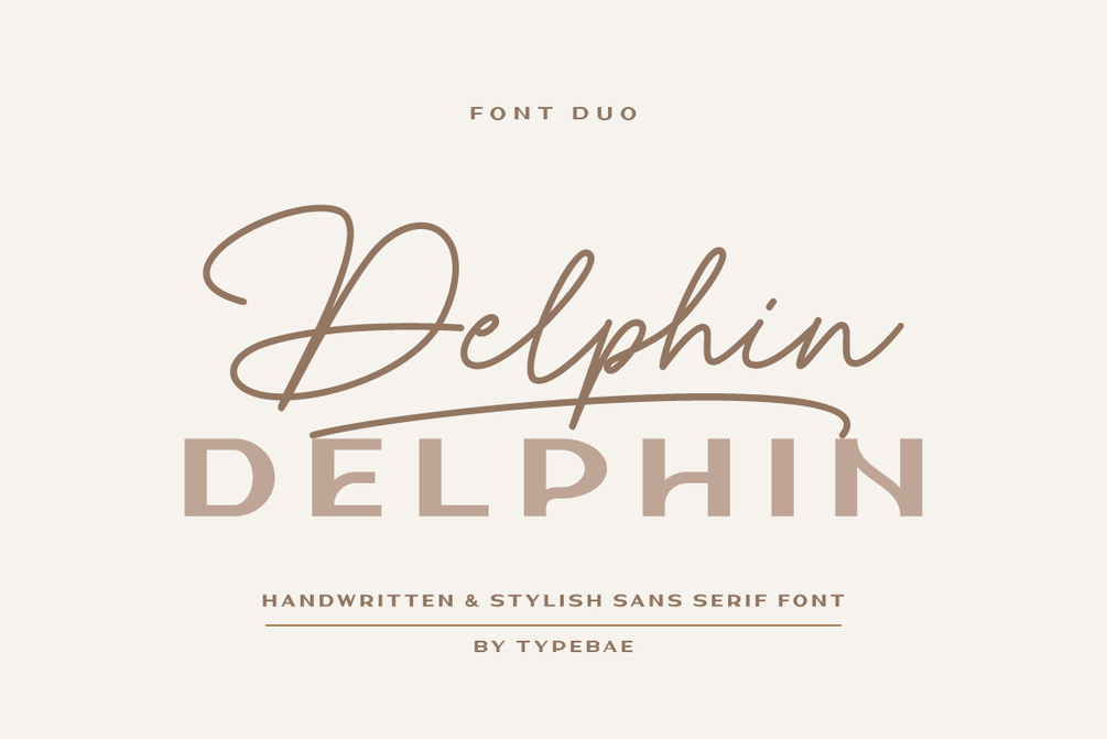 Delphin is a pair of beautiful handwritten script and stylish sans-serif fonts designed to contrast and complement each other with elegant beauty and contemporary style. Delphin features graceful swashes at the beginning and end of each letter.
