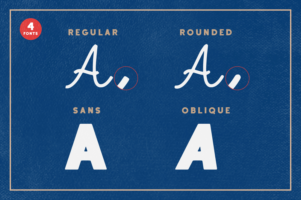 Delta Lake is a beautiful vintage script font paired with a sans-serif font. There are 4 styles available for you to choose from to add a vintage touch to any project.