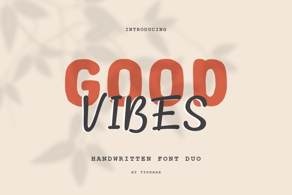 Good Vibes is a font duo that seamlessly blends a bold handwritten script with hand-drawn sans serif font. This combination creates a simple yet captivating style, perfect for adding personality and warmth to any design project. Good Vibes brings a touch of creativity and charm to the table.