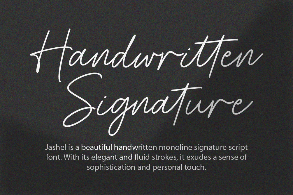 Jashel Font is a stunning handwritten signature script font. With its graceful and flowing lines, this font closely resembles the strokes of a carefully crafted hand signature. Whether used for branding, logos, invitations, or other creative endeavors.