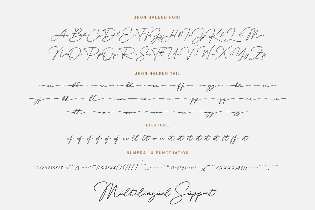 Jhon Halend is the perfect signature font, featuring a natural and stylish flow that showcases elegant tails at the beginning and end of each letter. It provides a binding element, allowing specific letter combinations to flow seamlessly for a more natural and authentic appearance, making it suitable for various projects that require a natural handwriting touch.