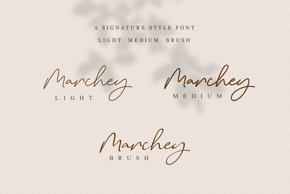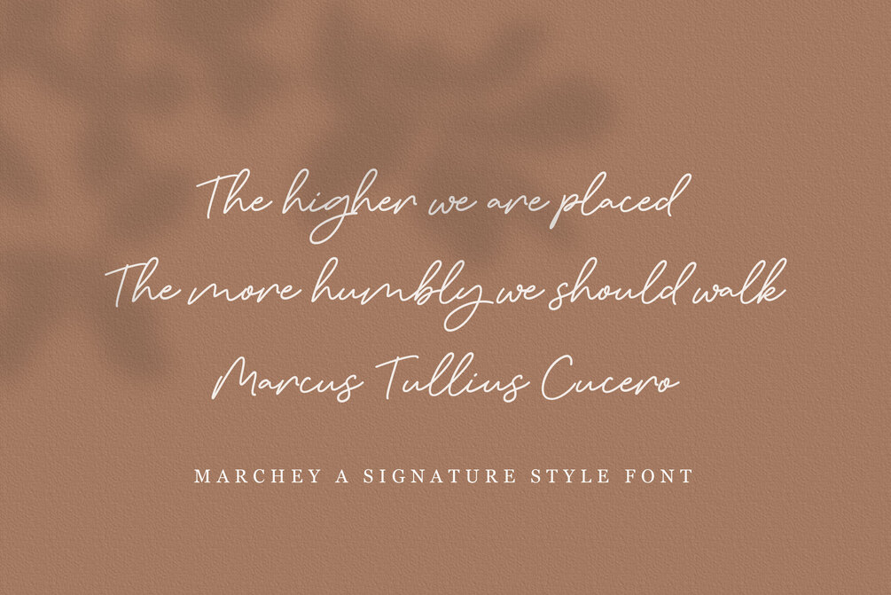 Marchey Signature is a versatile script font. Be mesmerized by its ravishing style and use it to create gorgeous wedding invitations, beautiful stationary art, eye-catching social media posts and more!