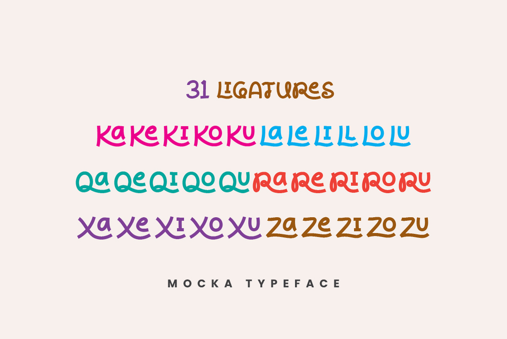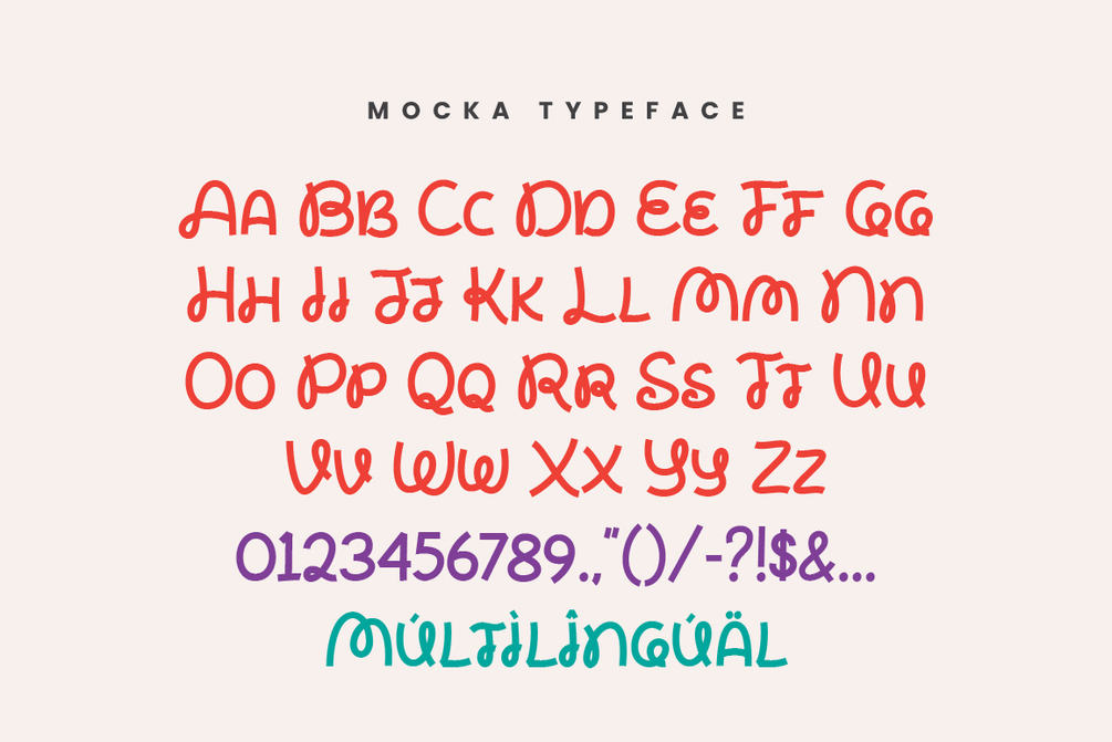 Mocha is a playful hand-drawn font with unique ligatures that add a personal touch to any design. Ideal for invitations, branding, and custom stationery, its playful style and distinctive letterforms make it stand out. Perfect for bringing a handwritten, vibrant feel to your projects.
