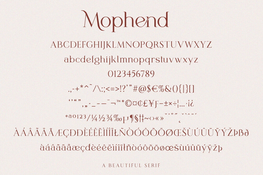 Mophend is a beautiful and elegant serif font crafted with joy and luxury. For those of you who are needing a touch of stylish, classy, chic and modernity for your designs, this font was created for you!