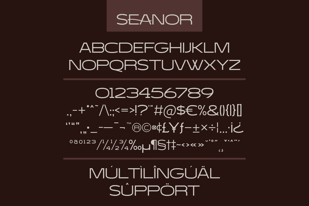 Seanor is a modern and versatile logo font that features 26 elegant ligatures. It offers a modern aesthetic, making it suitable for various branding and design projects. The font's ligatures provide unique and stylish combinations of letterforms, enhancing the overall visual appeal of any logo or typographic design.