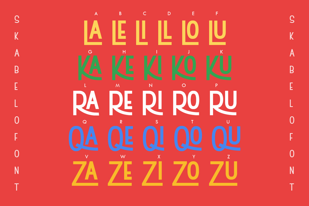 Skabelo is a display font with simple and playful. This font offers a collection of 26 unique ligatures, enabling creative and visually engaging typographic compositions. Its tall character design facilitates adjustments and is enjoyable to explore various shapes and layouts.