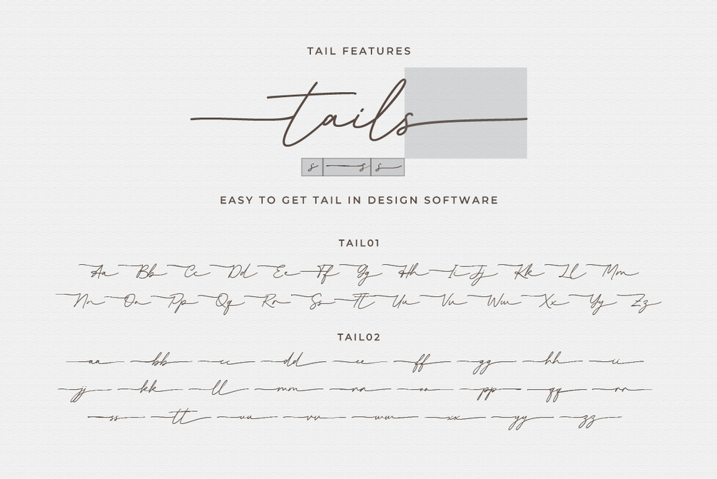 Valention is a chic script font inspired by natural and stylish handwriting. It features charming alternate letters and mesmerizing tails at the beginning and end of each stroke. A distinctive characteristic of this font is its heart-shaped connecting tails, which add a touch of romance and charm. It is perfect for branding, logos, invitations, greeting cards, headlines, and more.