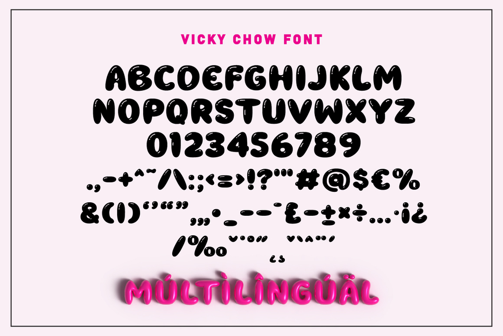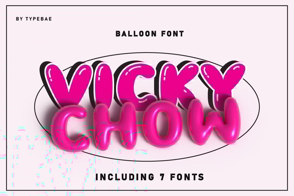 Vicky Chow is a cute and adorable chubby 3D balloon font that will fill your design with cheerfulness! It's great for various design themes that require a cheerful and prominent impression.